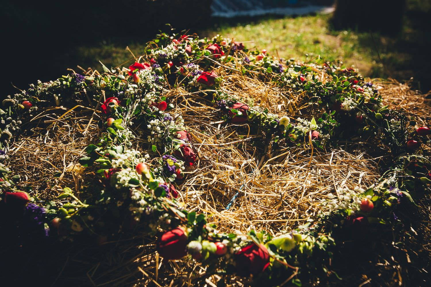 Hochzeit auf dem Bauernhof mit Heuballen als Bänke